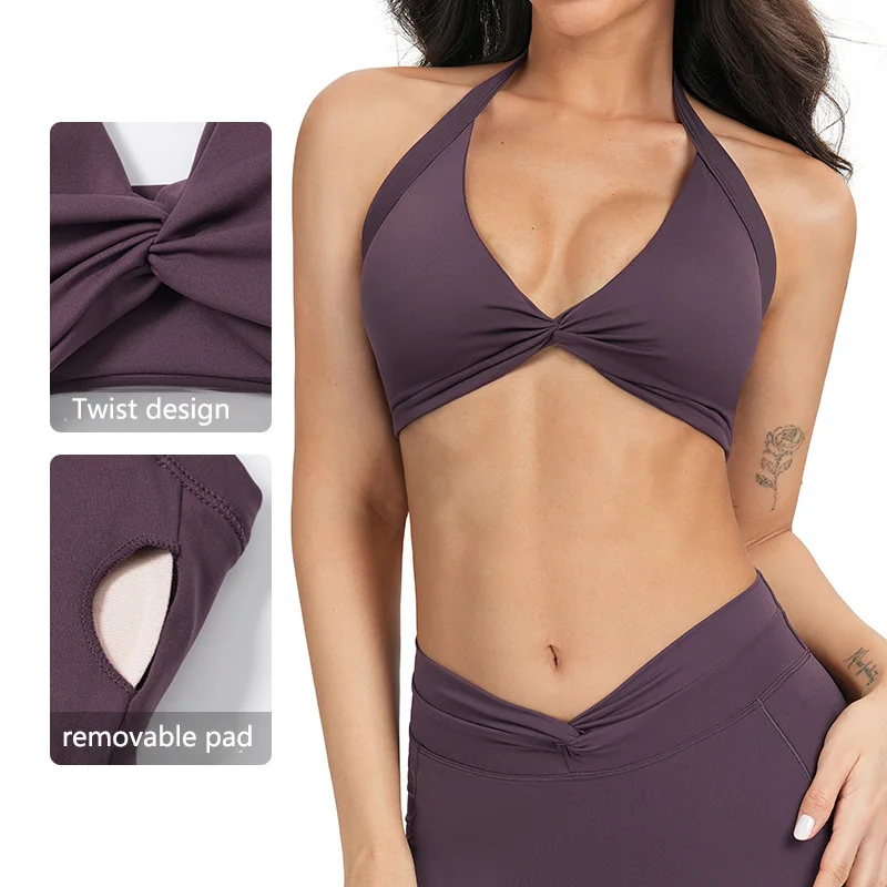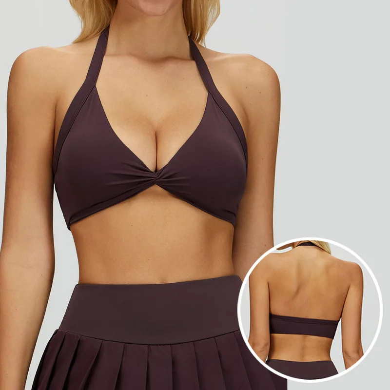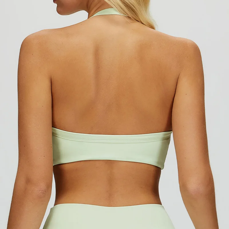 Roregal Halter Beauty Back Breathable Nylon Solid Color Sports Underwear Women's Nude Fitness Yoga Wear Sports Bra